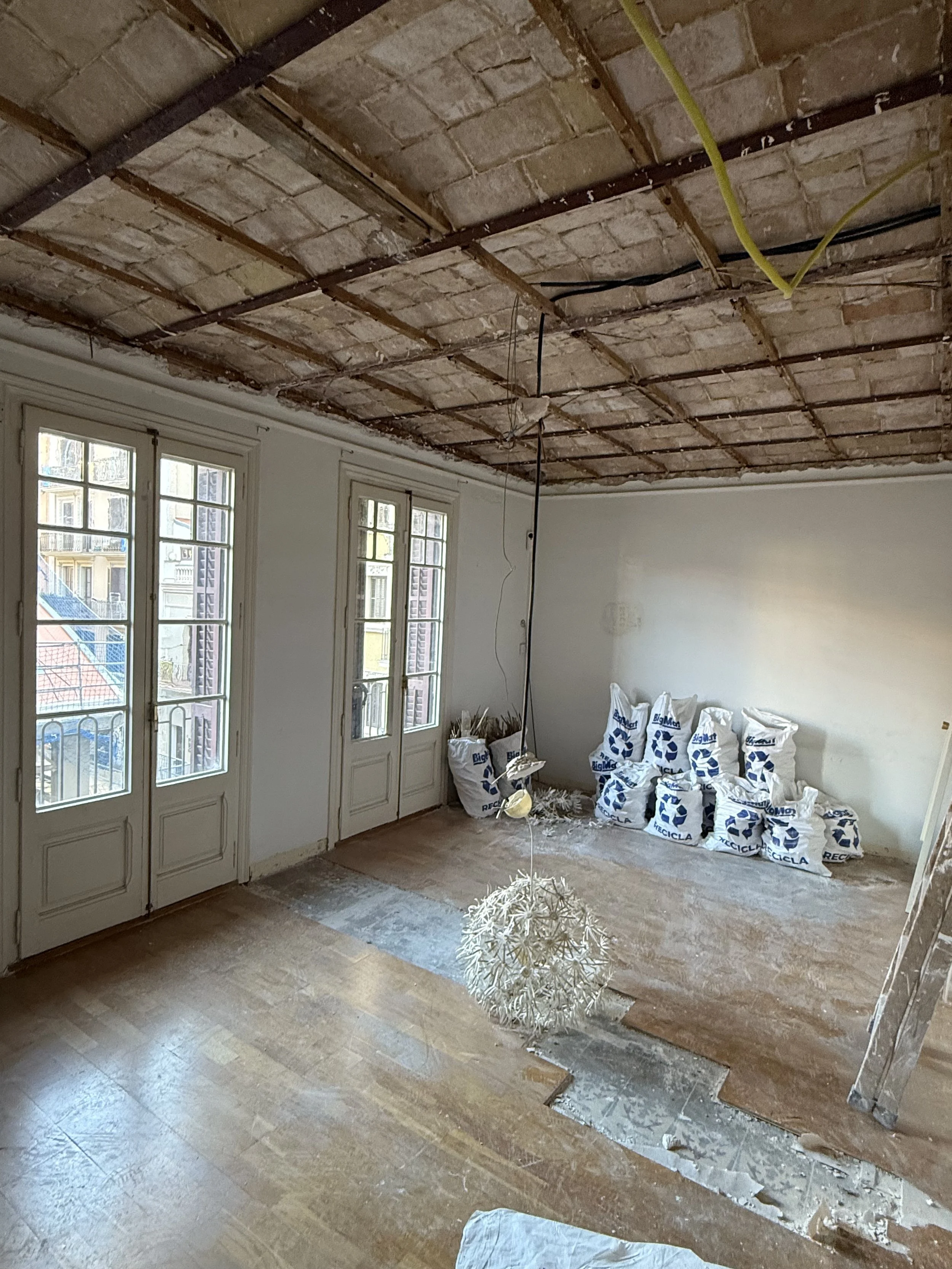 A two-bedroom apartment undergoing a full renovation, combining the restoration of original Hidraulico flooring with premium parquet and renewed Catalan vaulted ceilings. The kitchen and bathrooms are redesigned with a modern, refined aesthetic, while all infrastructure is upgraded to contemporary standards. From the balcony, a unique view opens toward Gràcia’s new market a perfect blend of Barcelona’s authenticity and modern urban living.